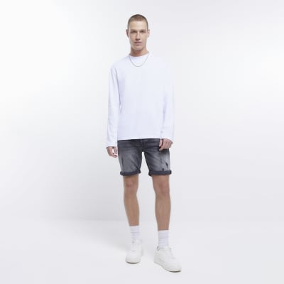 Black Slim Fit Ripped Turn Up Denim Shorts River Island